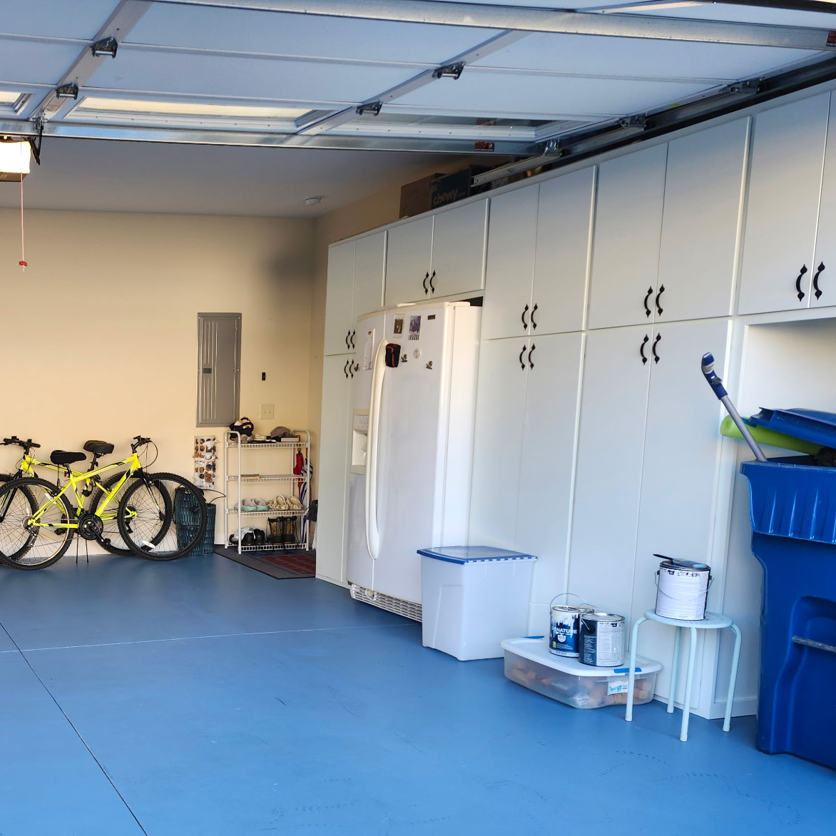 Our cabinets give your garage a finished, professional appearance without the cost of custom built-ins. Stronger and longer-lasting than store-bought metal or particle board units, they’re a practical upgrade that looks good for years.